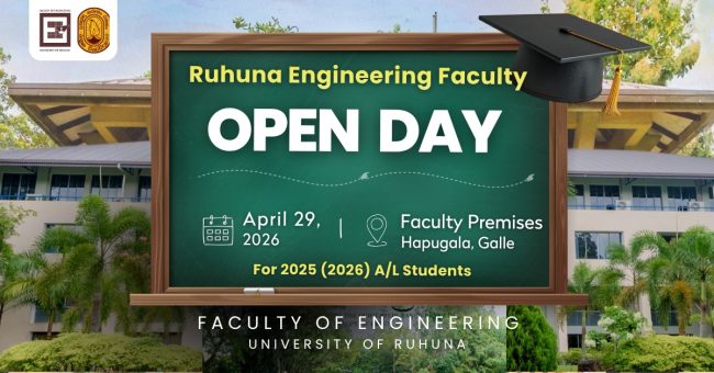 We warmly invite students who have received their G.C.E. Advanced Level (A/L) results and aspire to pursue a degree in Engineering in Sri Lanka to attend the Open Day at the Faculty of Engineering, University of Ruhuna. The event will be held on 29th April 2026, from 9:00 a.m. to 4:00 p.m., at the faculty…
