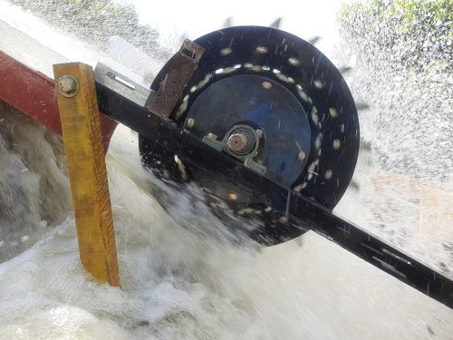 This project directly addresses these gaps by designing and fabricating an enhanced testing apparatus that systematically evaluates water wheel performance under varying blade angles, blade numbers, and flow rates. The integration of a calibrated torque application system, an alternator for power conversion, and structural improvements ensures accurate data collection and demonstrates practical electricity generation. The resulting dataset provides a critical reference for optimizing future water wheel designs, enhancing their efficiency, durability, and site-specific applicability.